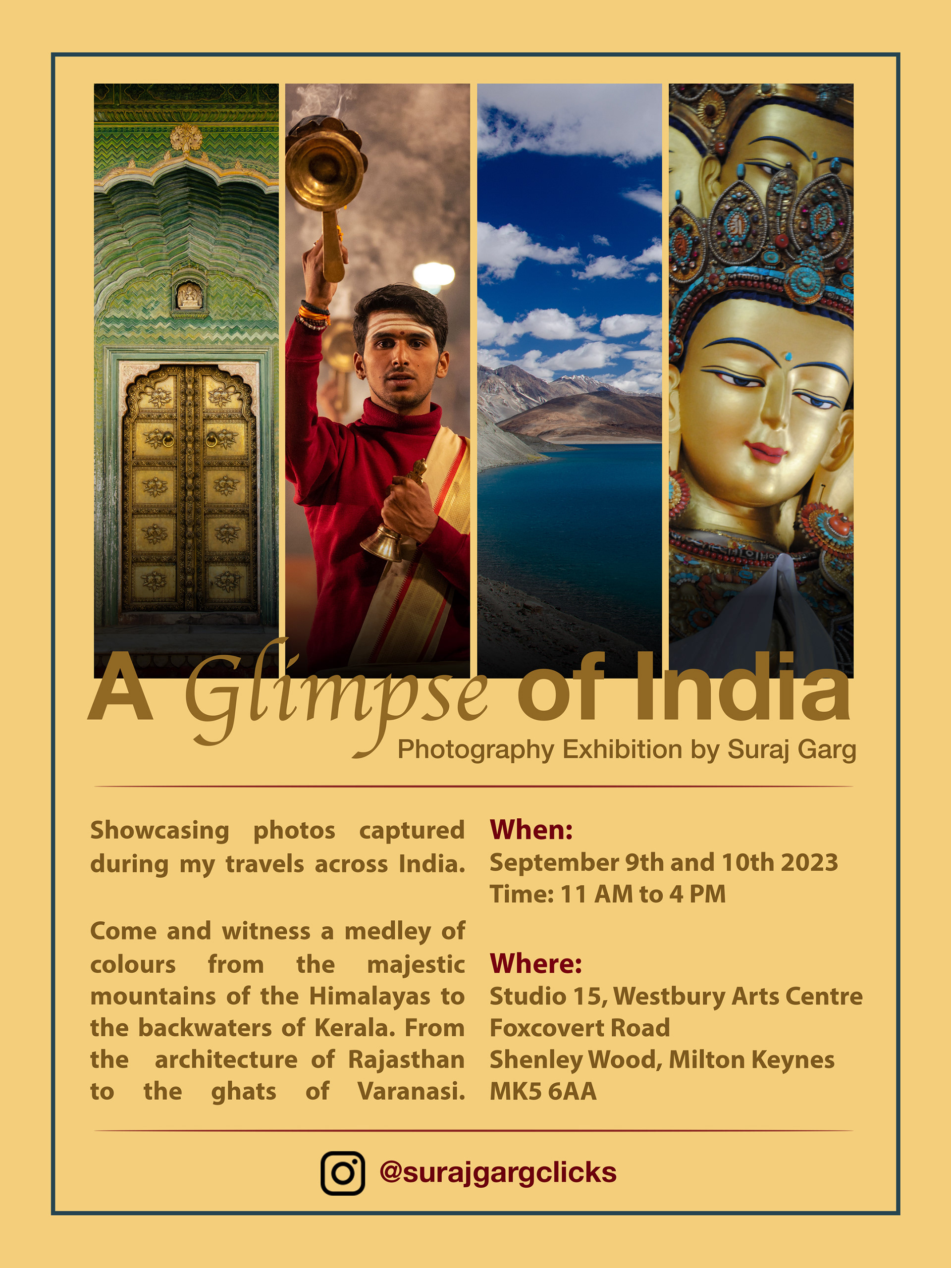 I hosted my first photography exhibition titled 'A Glimpse of India' at the Westbury Arts Centre in Milton Keynes, England on September 9th and 10th 2023.
