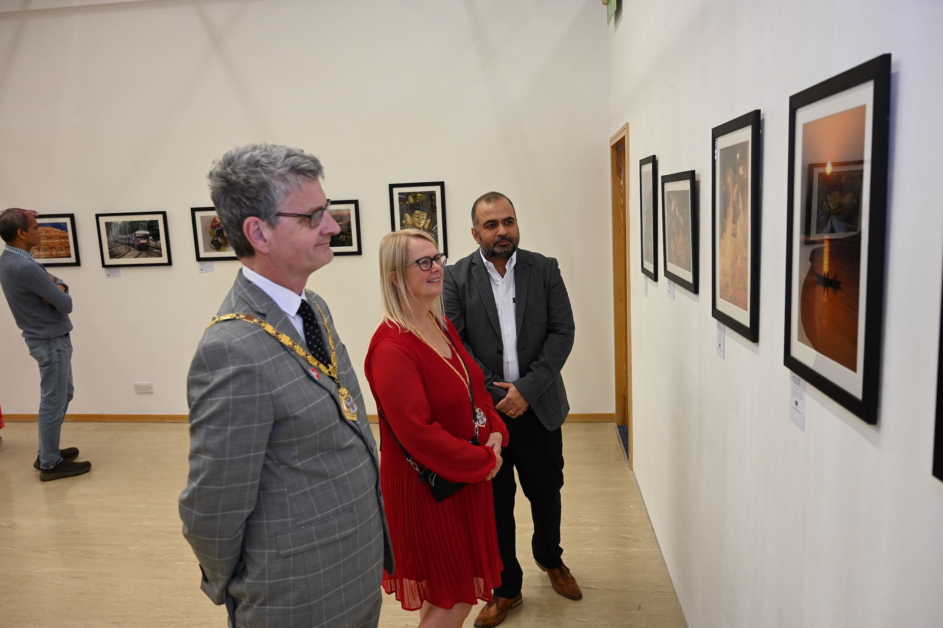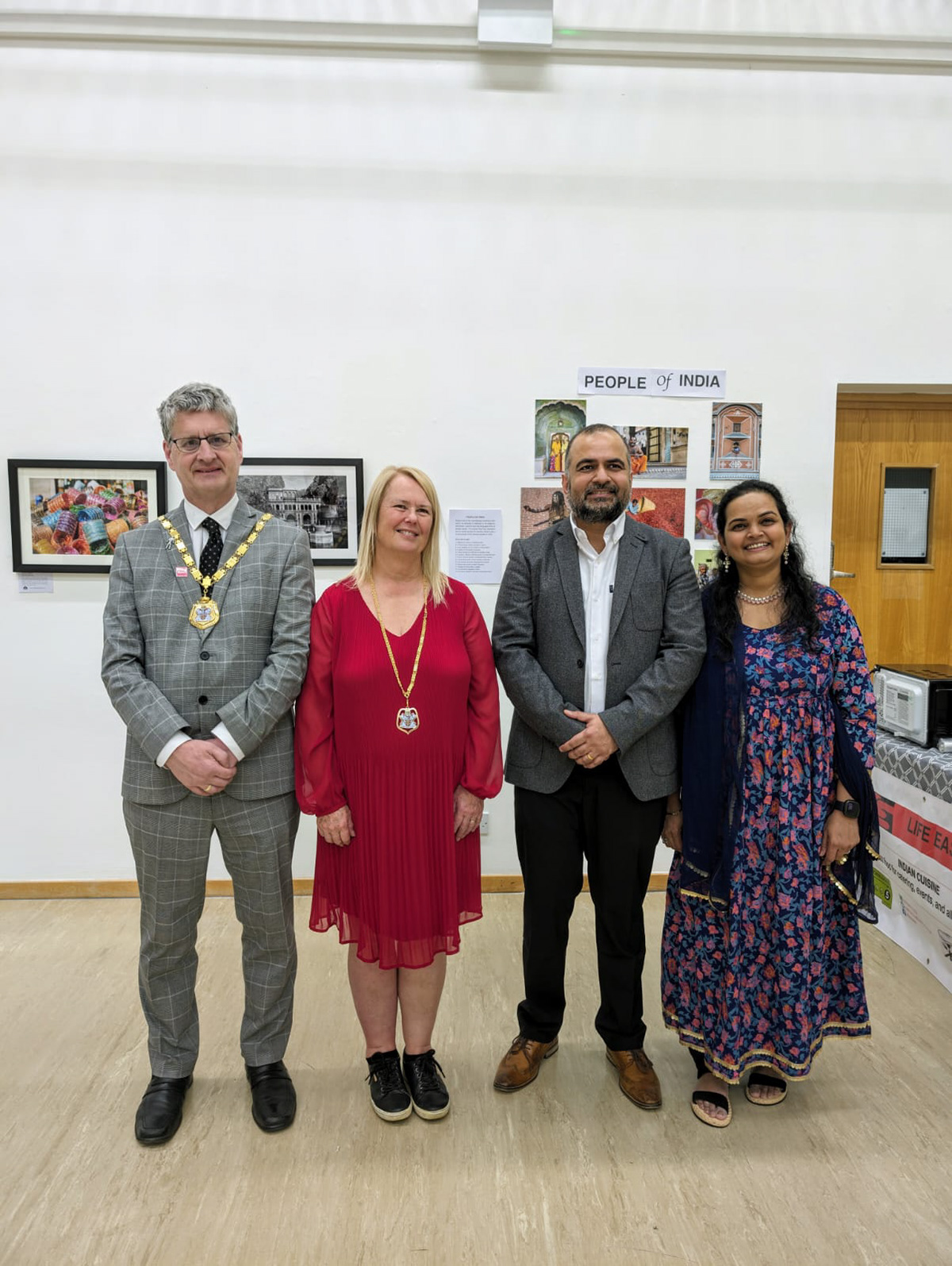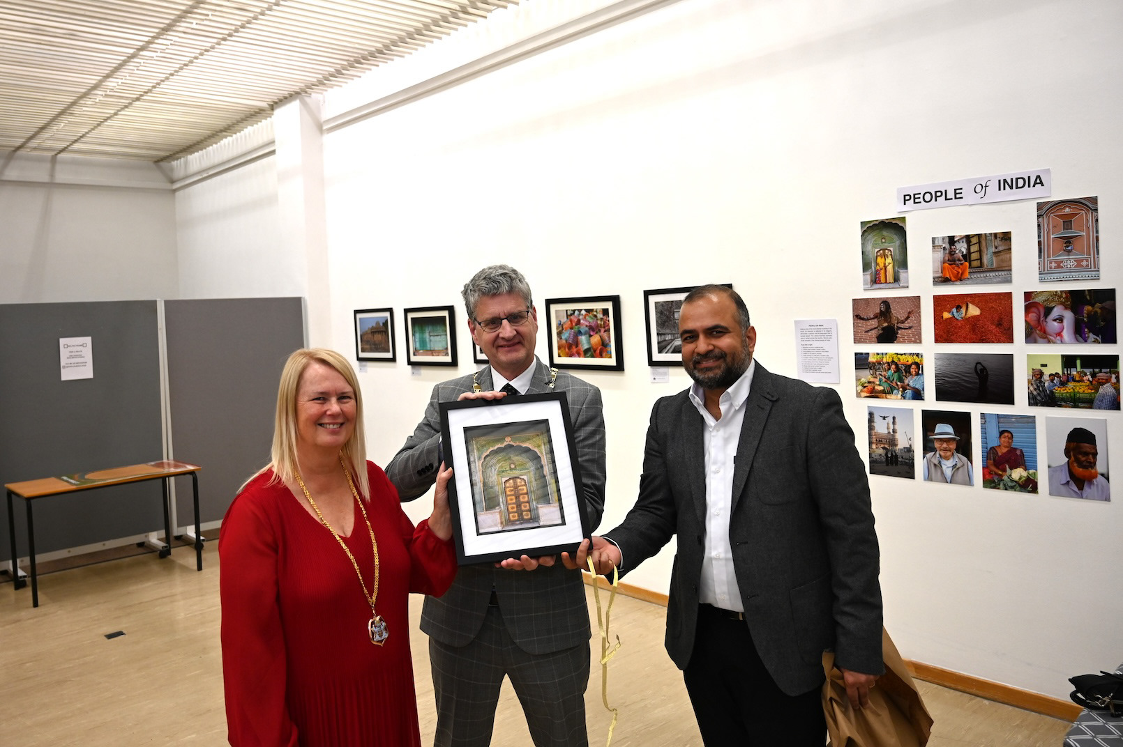 The man in the centre is a tourist posing for a pic flanked by the royal guards at the City Palace. He seems to be from South India as he is wearing a piece of clothing on his lower body called veshti. It is a traditional white cloth with a golden border and worn on special occasions.